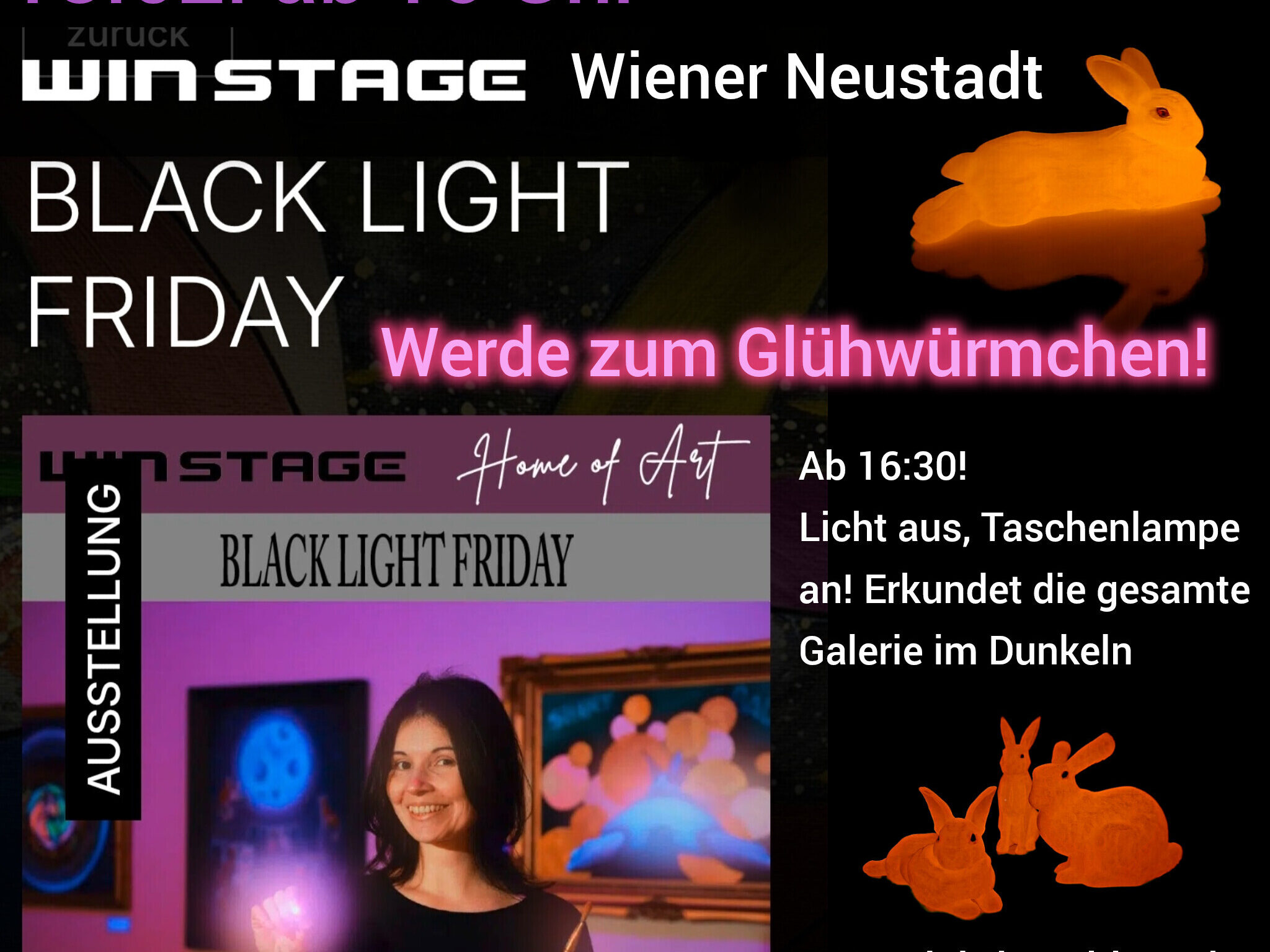Am Freitag, den 20.02.2026 , wird es dunkel in WinStage. Keine Scheinwerfer, keine Fluter – nur du, eine UV-Taschenlampe und 2.000 m² voller Geheimnisse.